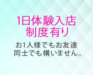 | 仕事内容 | お店のコンセプトといたしまして女性らしさやムード、おもてなしを重要視した営業内容を考えておりますので、マニアックな内容や高度なテクニックを要する接客内容は一切必要ございません。 ご経験者の方はもちろん、初心者の方や未経験の方でも簡単に出来るお仕事内容となっておりますのでご安心頂ける事と思います。 やはり風俗という業界に不安を抱かれる方も多いと思いますので、そんな方におすすめの『体験入店』をご利用下さいませ。体験入店は1日〜5日まで自由にご体験頂けます。 体験入店終了後、ご本人の意思にて正式に入店頂けるかどうかを決めて頂きますので、無理な引き止めなど一切ございません。 お問い合わせ、ご応募頂ける女性の方はOLさんであったり、主婦、シングルマザーの方等様々な生活スタイルをお過ごしなされている事と思います。当店ではどの様な方でも出来る限り働き易い環境を提供出来る様に致したいと考えております。 |