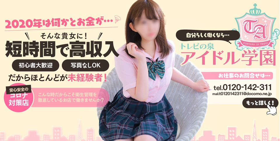 | 仕事内容 | 未経験で始められる方、大勢いらっしゃいます!大学生、専門学校生。 学費や卒業後の就職、一人暮らしの一時金などを求めてしっかりと 収入につなげています! 「初めてのお店選び・・・」、「1日体験だけしたことがあるけど、なんか違うかも・・・」「未経験でも働いてみたい・・・」 とお悩みはございませんか? そのお悩み大丈夫です!全く問題ございません! また、「スタッフさんがちょっと・・・」「短時間勤務しかできない・・・」「雑費などが入店当初と違う・・・」 などいろいろな理由で移籍してきた子が今では当店で楽しく働いております。 皆さんが移ってきてよかったと言ってくれています。環境もお客様層も良いので働きやすいと言ってくれる子も多いです。 今の現状に満足されていない、物足りない方は思い切ってトレビの泉 愛ドル学園で働いてみませんか? 【生活を安定させたい】【今より収入を増やしたい】【自分に合ったお店で頑張りたい】何でも構いません。 収入のお悩み、環境のお悩みを解決するサポートをさせて頂きます! 質問だけでもOKですので、どうぞお気軽にお問い合わせくださいね! |
